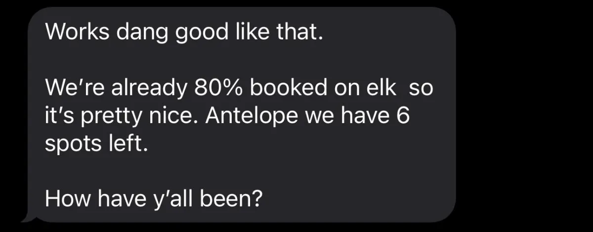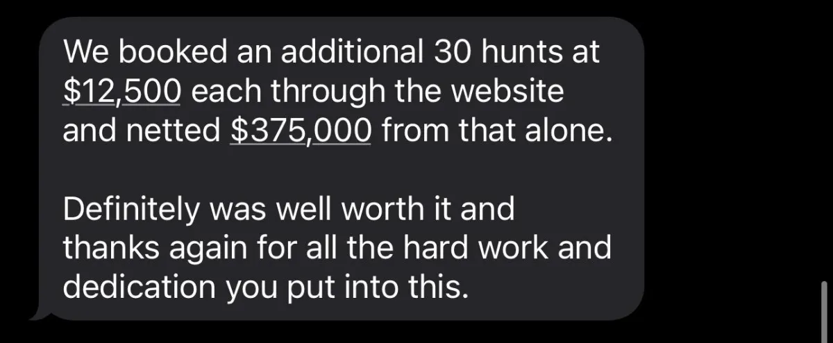 Corey Sold 150 Hunts for the 2022 Hunting Season through the Website We Built Him